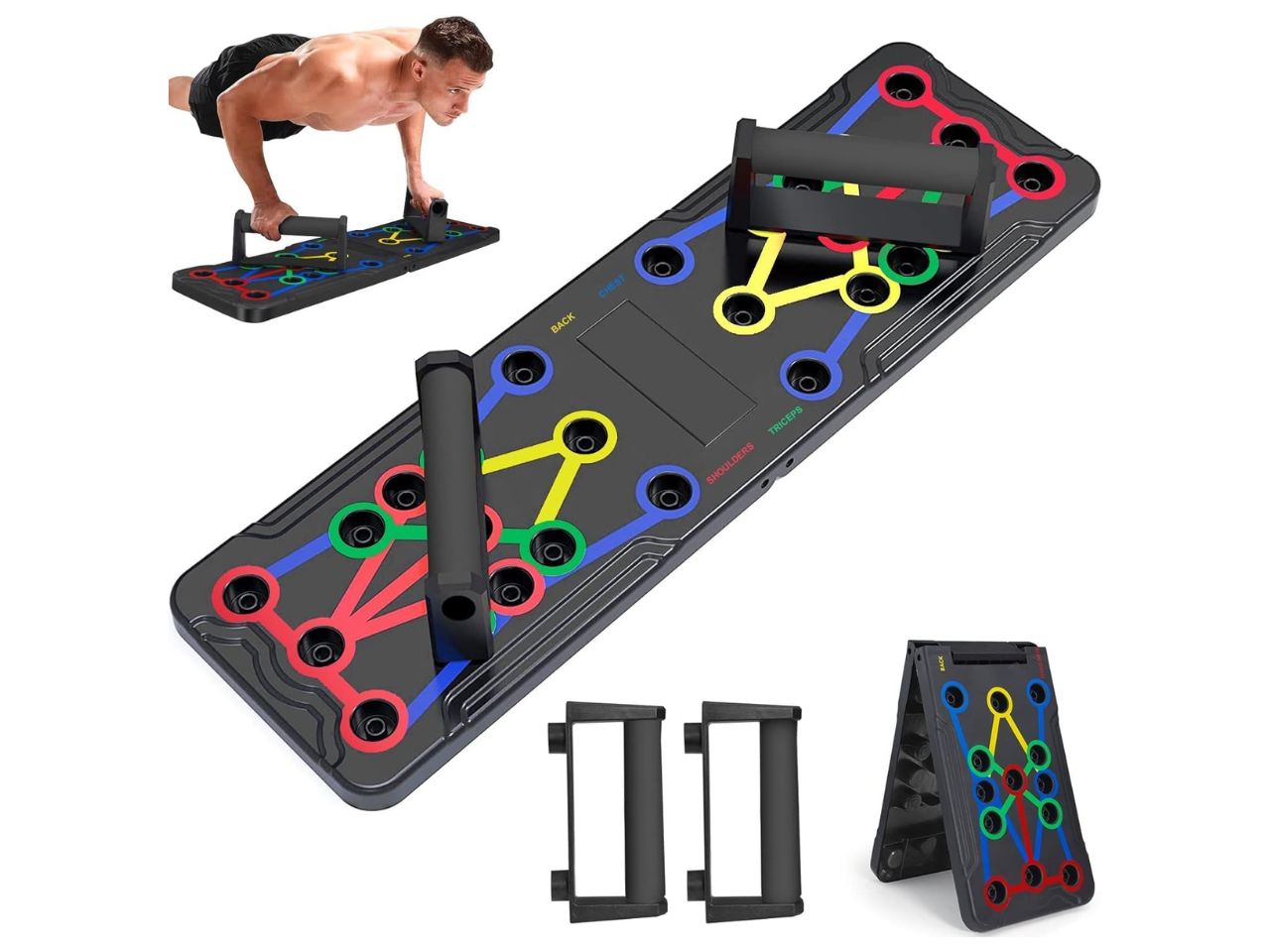 The board’s smart color-coded slots guide precise hand placement to activate specific muscle groups. Target your chest, shoulders, triceps, and back more effectively without guesswork.
